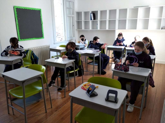 Se les planteó la situación del Covid-19 (problema) y los alumnos exploraron la etapa de creación de máscaras en el marco de la solución del problema.
